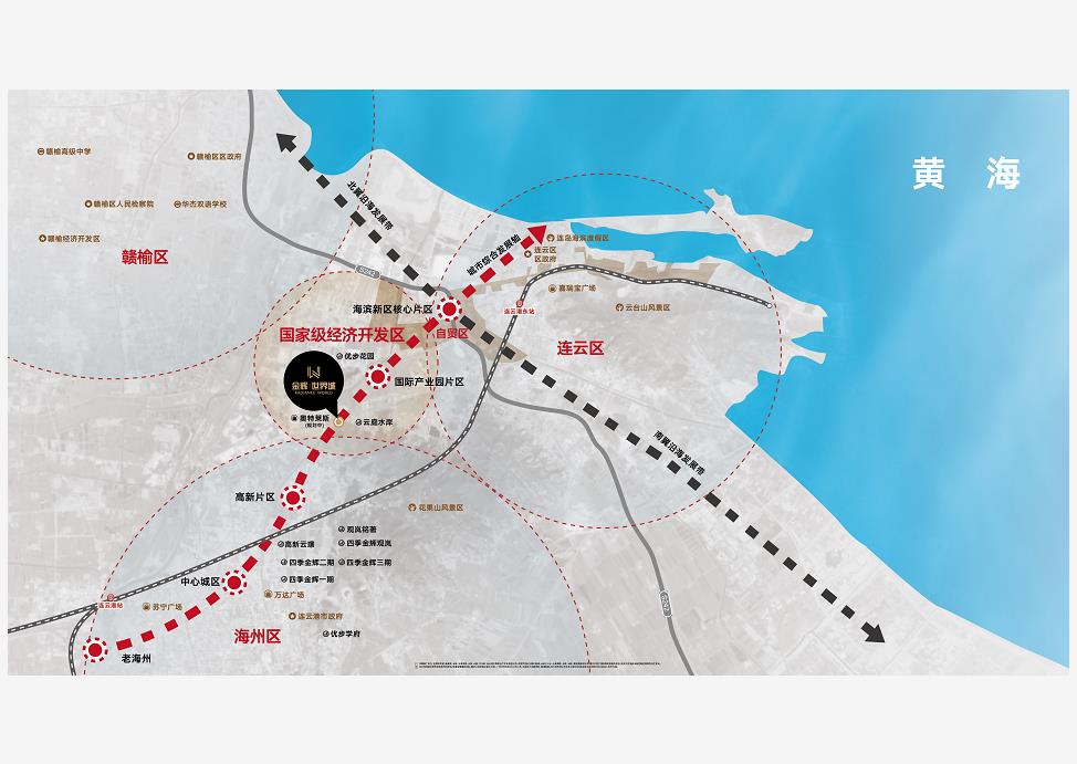 南連海州區(qū),東接連云區(qū),西面贛榆區(qū),項目周邊公交2路、58路、59路、60路、901路、902路、環(huán)環(huán)相通。市郊列車,BRT路線-B20與體育中心站交匯,縱橫通達的立體交通路網(wǎng),暢達全城。